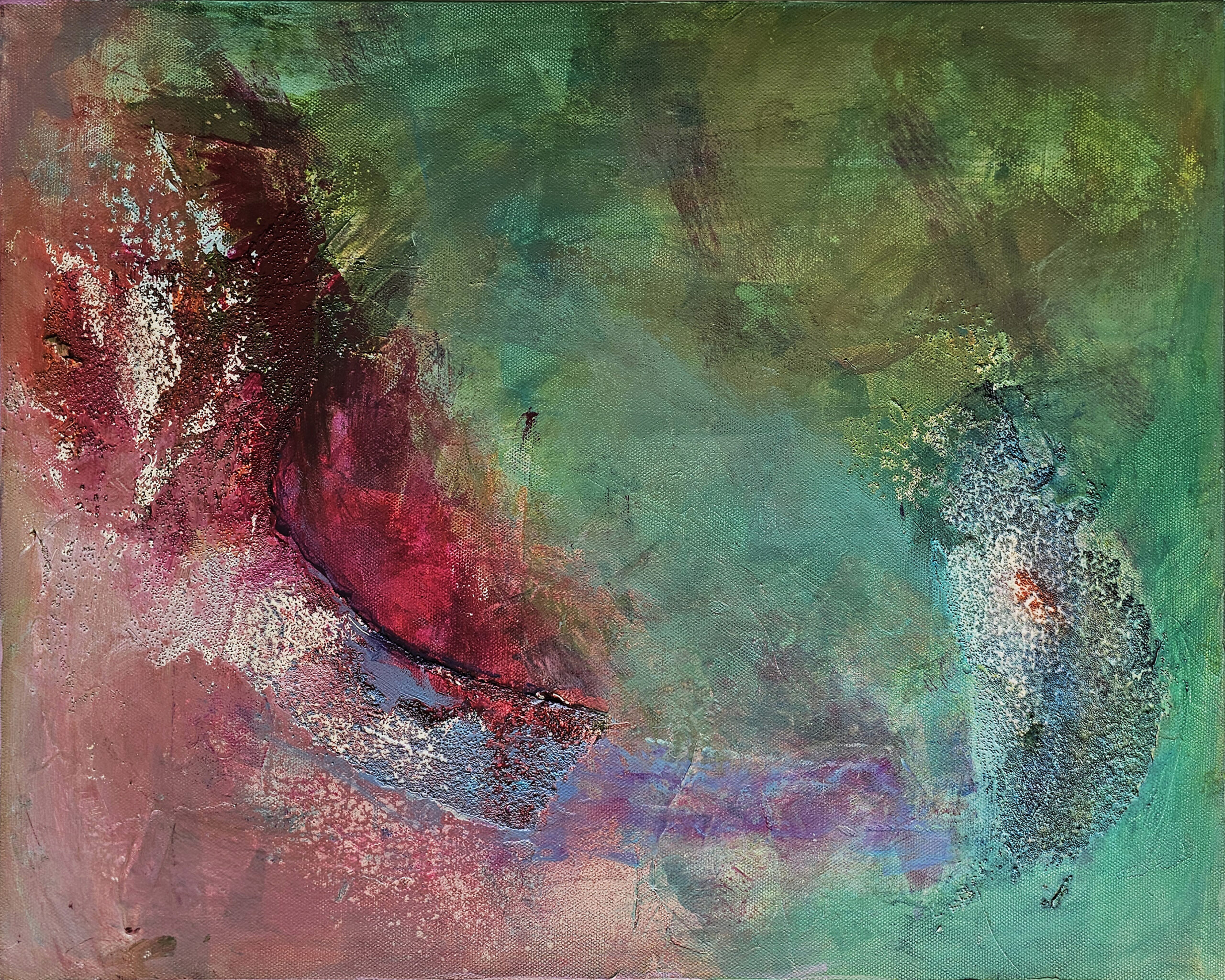 Process-driven abstracts built through layers of color and texture.
